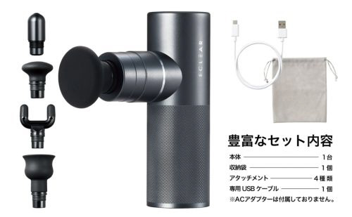 筋膜リリースガン リフレッシュガン 4段階振動 アタッチメント (4種類) 軽量 【 首 肩 腰 ふくらはぎ 足裏 他】 電動ガン ボディケア ガン 充電式 スポーツケアモデル ECLEAR ブラック