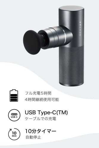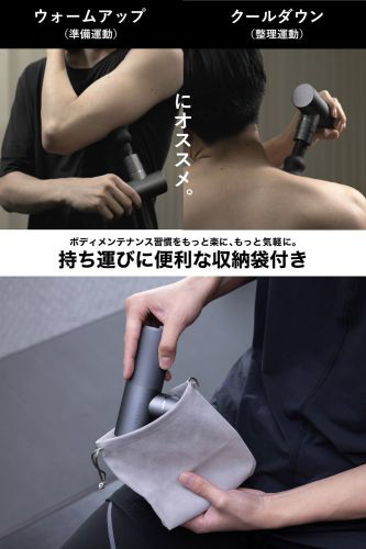 筋肉に着実にアプローチする力強さがありながら、本体は500g以下の軽さを実現。スポーツジムやグラウンドなど、外出先でも使えます。