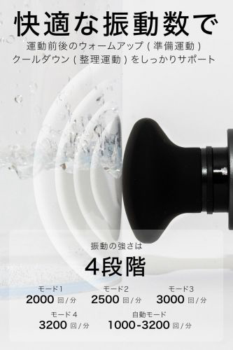 振動の強さは4段階。心地よくソフトな振動から筋肉に響く強めの刺激まで、好みの強さを選べます。