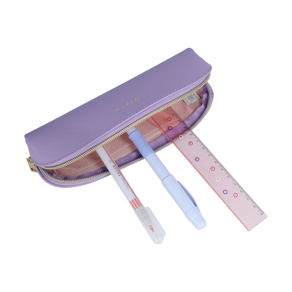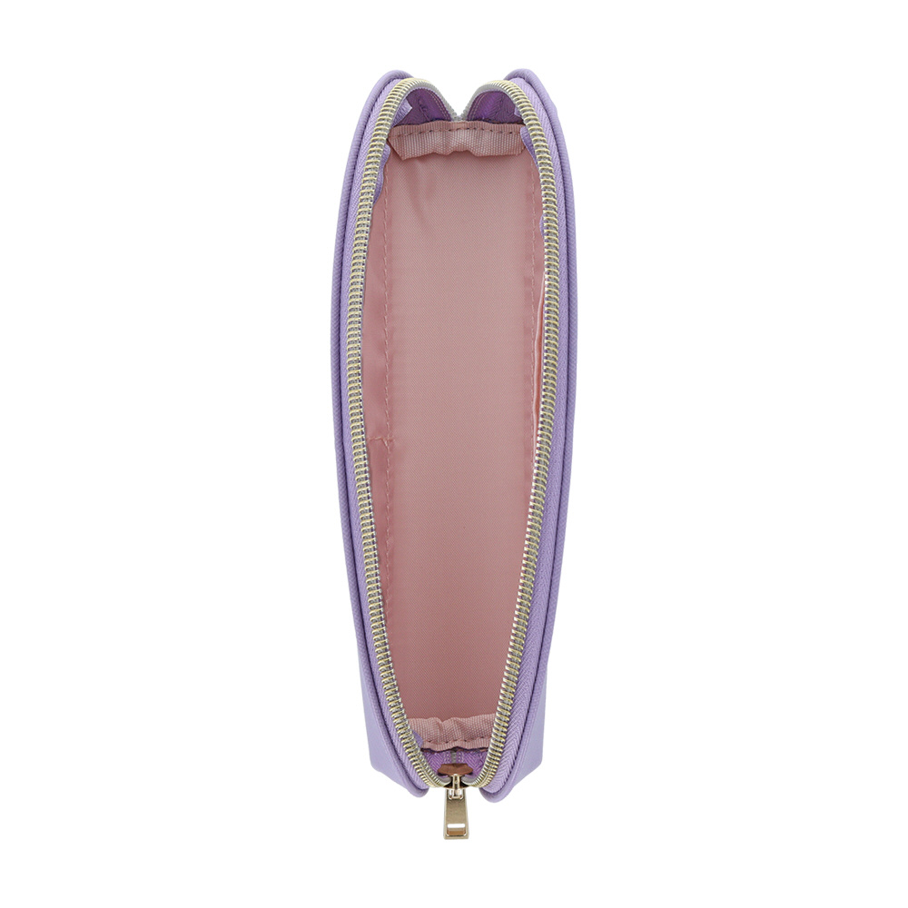 大きく開いてよく見える!トレーのように使える、「ペンケース mieru(ミエル)」。柄は、ミエル。カラーは、グレープベリー。