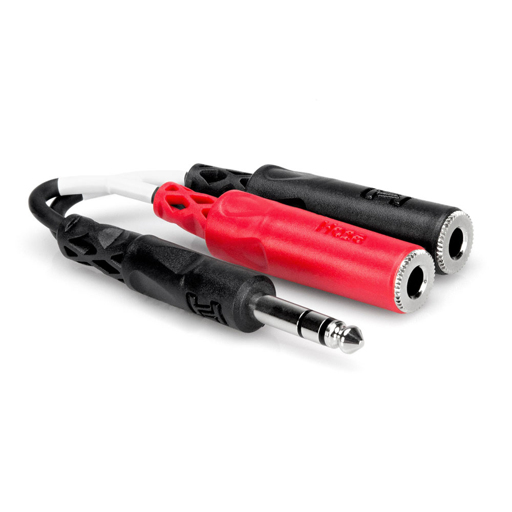 ステレオフォンオス(1/4” TRS)とモノラルフォンメス(1/4” TS)×2を採用した変換ケーブルです。ステレオの信号をモノラルフォンのLRに変換する事が可能です。