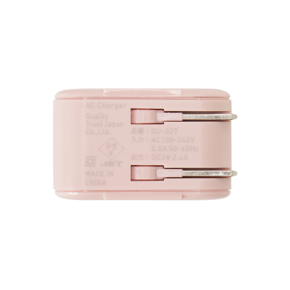 2.4A出力USB2ポート スリムタイプACアダプタ ピンク QU-029PK
