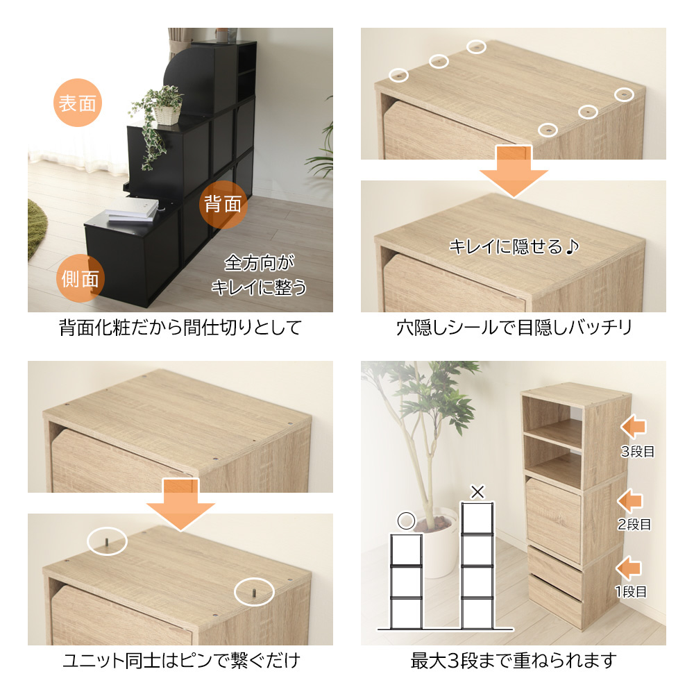 組み合わせ自由 キューブボックス 棚タイプ(貫通型) 幅34.5×奥行29×高さ34.3cm JAJAN ブラック CUB-T35SBK