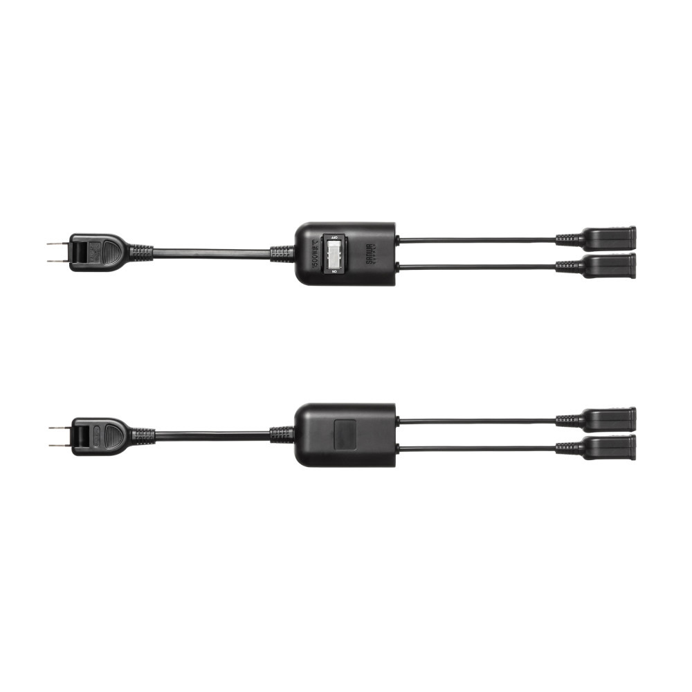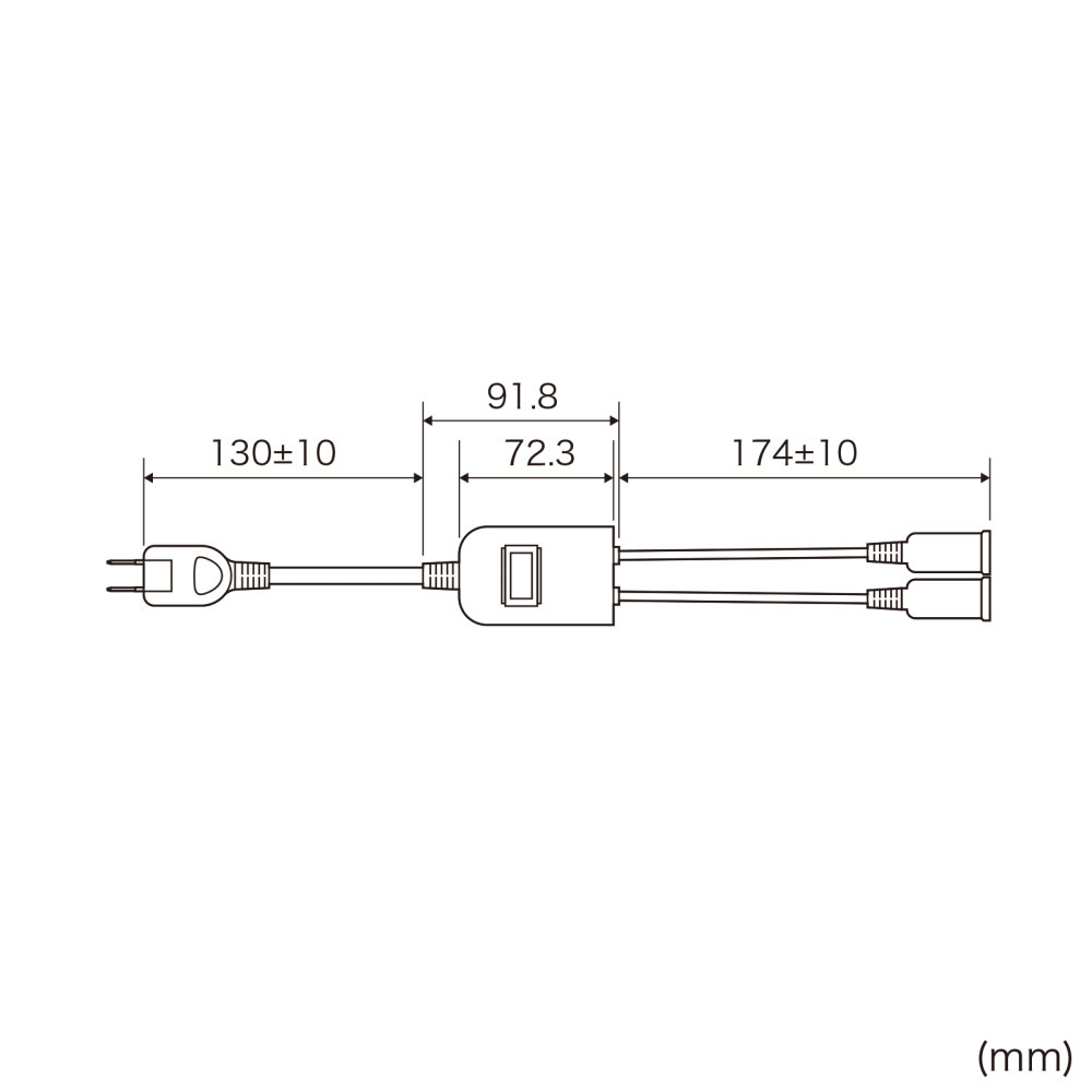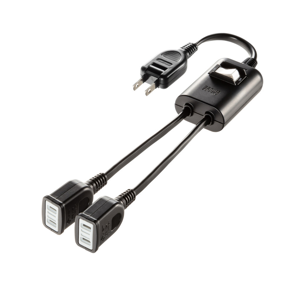ACアダプタ使用時に無駄なく設置できる分岐タイプの電源延長コード。一括集中スイッチ付き。