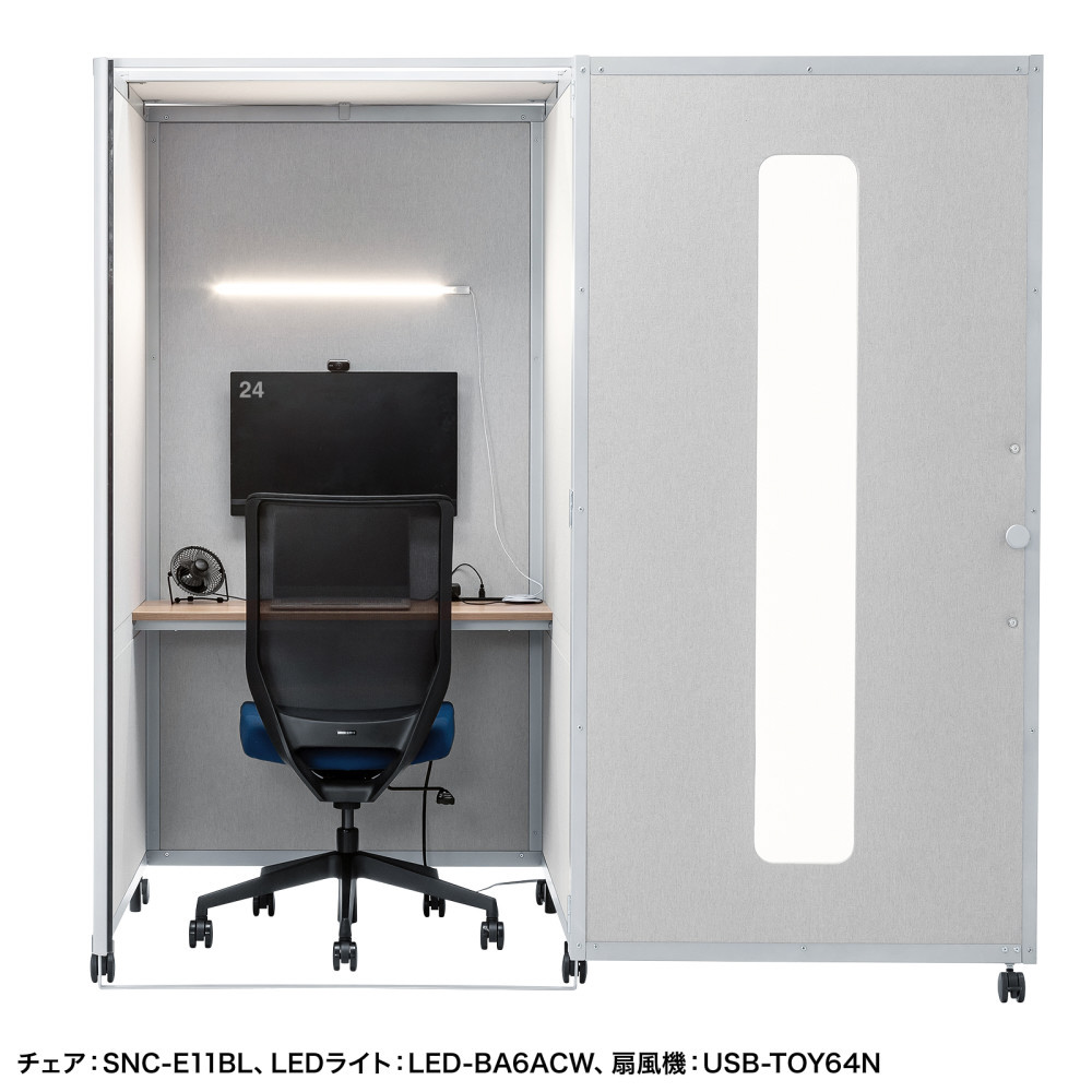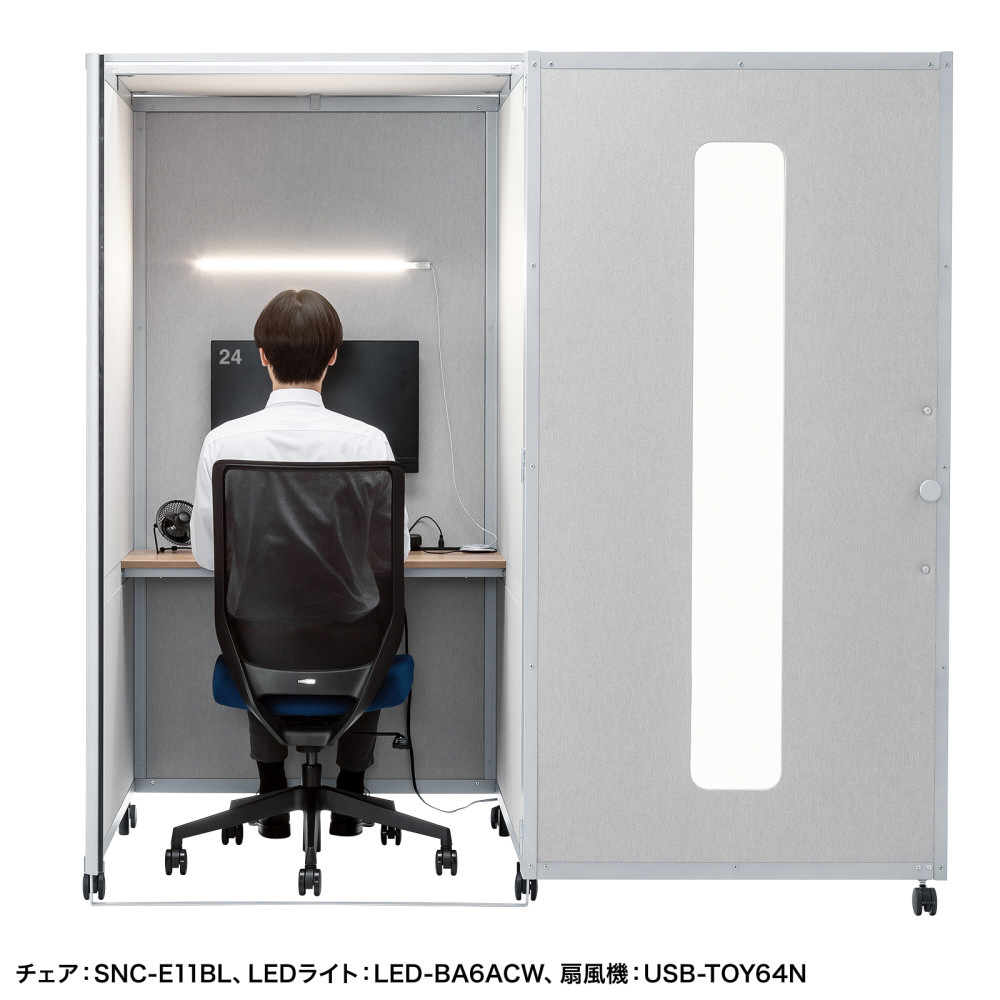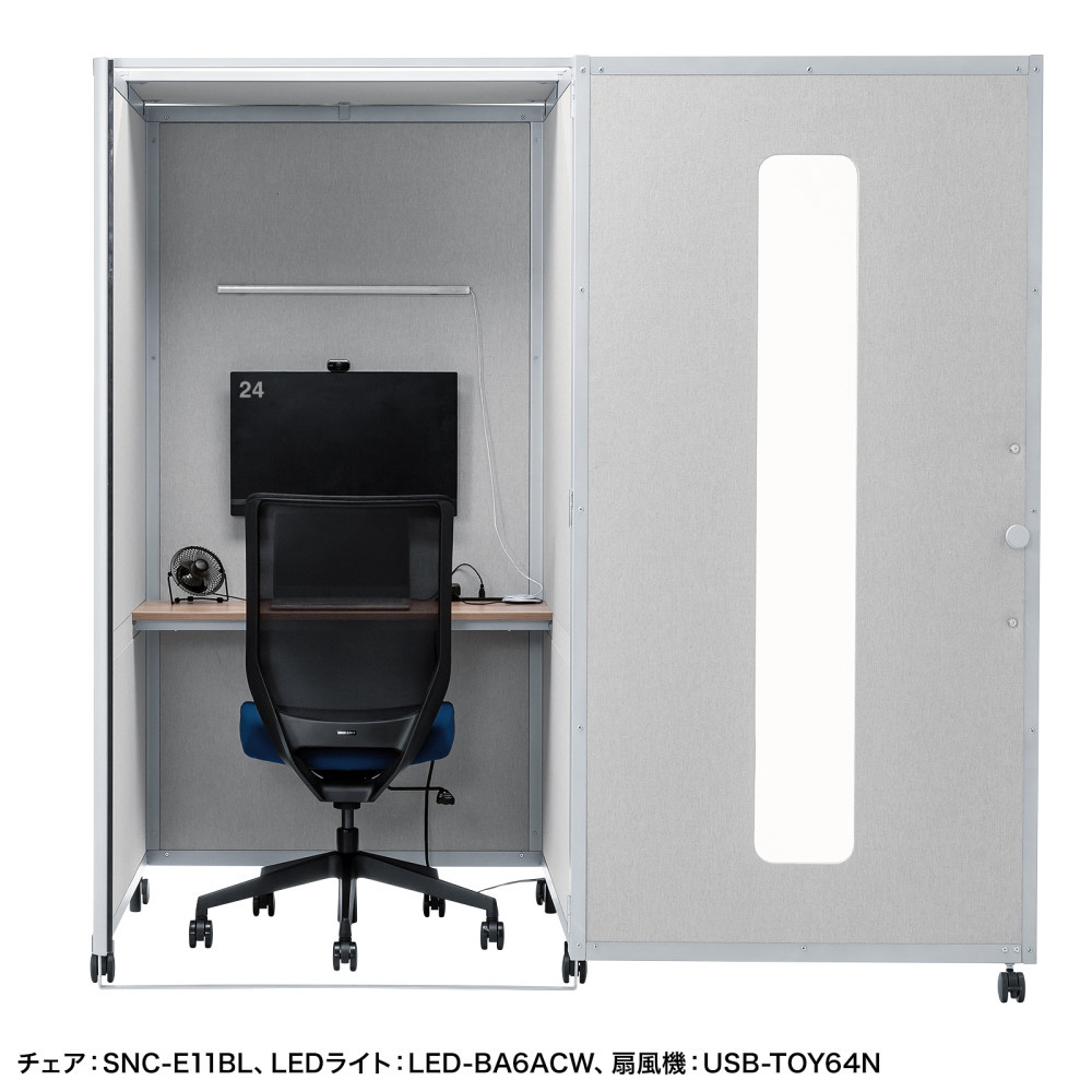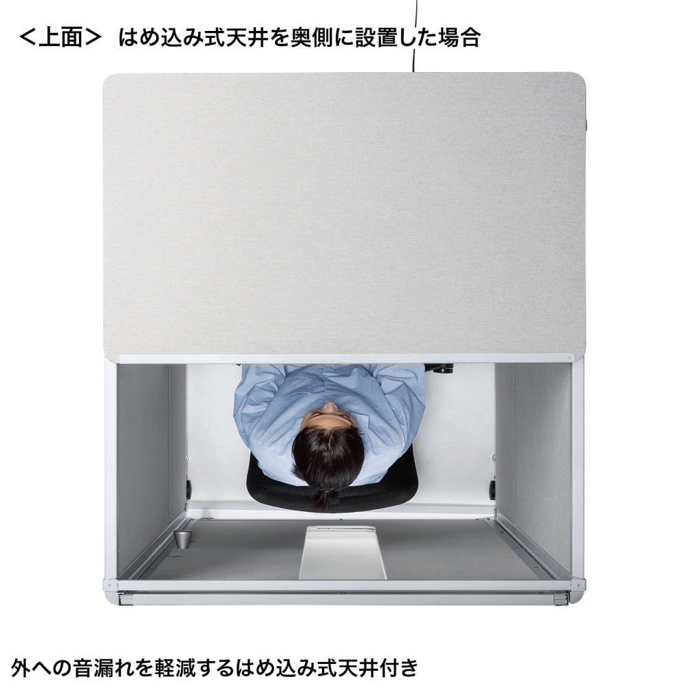 ●外への音漏れを軽減するはめ込み式天井が付属しています。内部の音を外へ出しにくくするための前方用パネルとデスク部を明るくしたい際の後方用パネルを同梱しています。