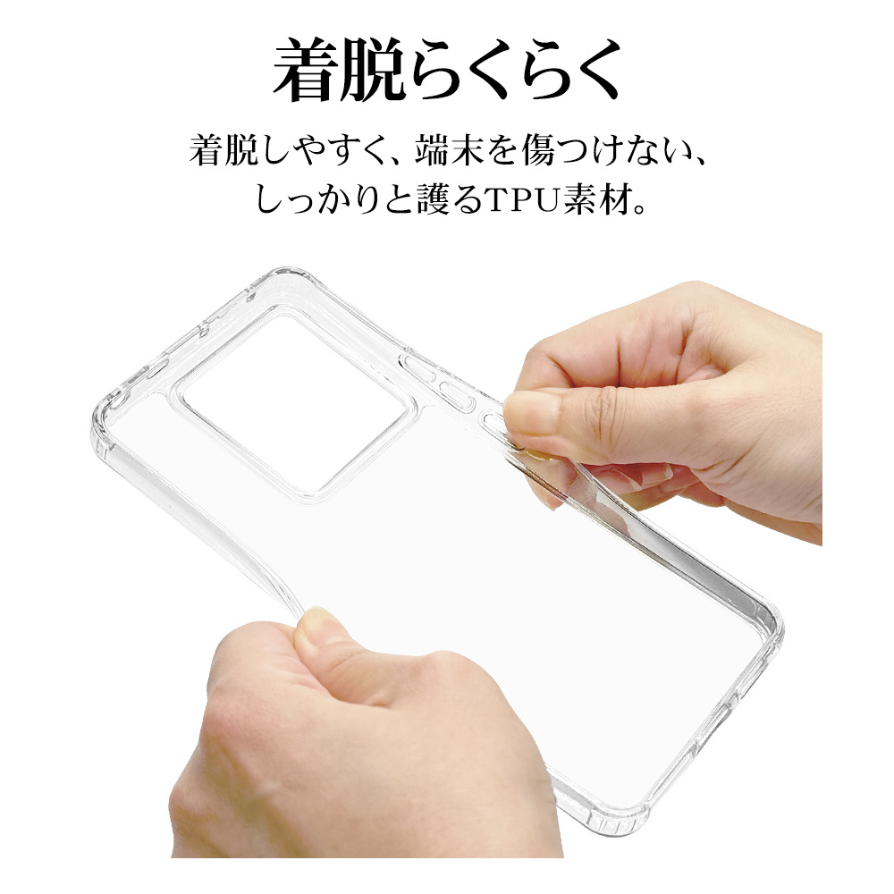 ●側面は弾力と柔軟性を兼ね備えたTPU素材で端末を衝撃から保護。背面は傷に強いポリカーボネート素材を使用しています。