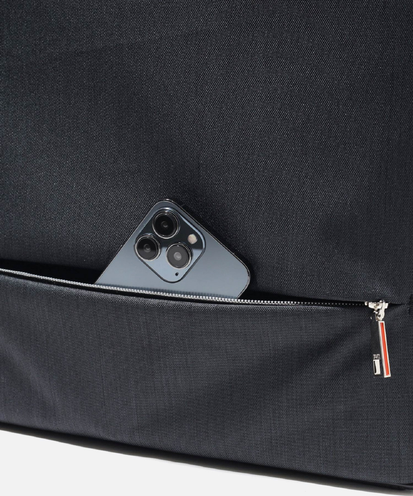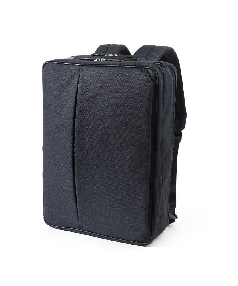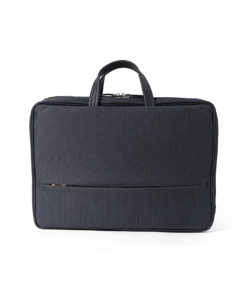 本体素材には、シャンブレー調のポ リエステル生地に撥水加工を施した生地を使用し、軽量に仕上げました。シンプ ルなデザインながらも、2本手ハンドルが隠れる機能が特徴。ハンドルを出し入 れしても型崩れしにくいよう見えない内側にも工夫しています。フロントポケットの内側はパイル地を使用。キズが 付きにくく、スマホなどの電子ツール収納に適したポケットです。全型共通でセッ トアップ対応しているので、出張や旅行にも便利です。