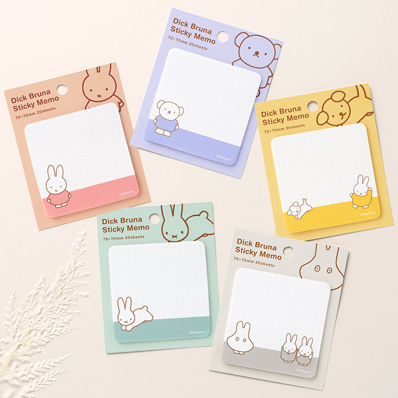 ディック・ブルーナの絵本のキャラクターをあしらったステーショナリーシリーズ。明るくやさしいカラーで大人も使いやすいデザインの付箋です。書き込みスペースが広く方眼入りで実用的に使えます。キャラクターで選んでも、好きな色で選んでも。