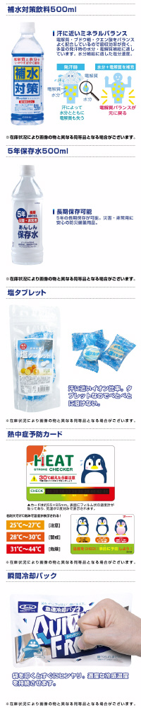熱中対策用にアウトドアや学校行事での応急常備用としてご活用ください。
