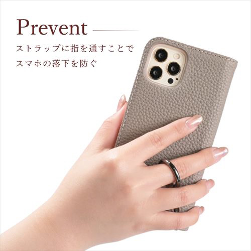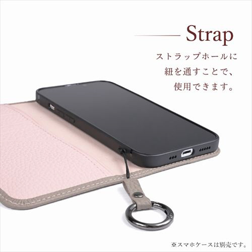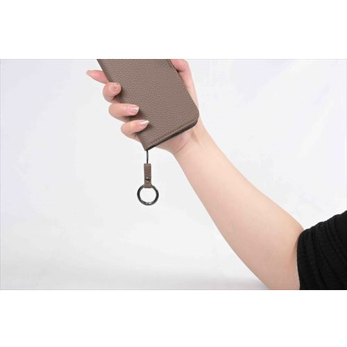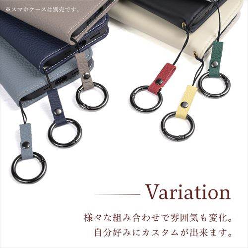 本革シュリンク素材のショルダーストラップです。リングタイプなので、リングに指を通せば、落下防止になります。スマホケース以外にも取り付けが可能です。