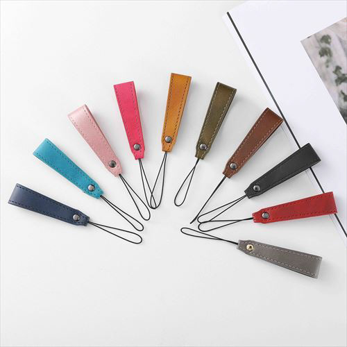 シンプルなPU素材のショートストラップです。リングに指に通すことでスマートフォンの落下を防ぎます。柔らかい素材でスマホを傷つけず、手や指が痛めない設計です。スマートフォン以外にも鍵やパスケースに取り付けても可愛いです。