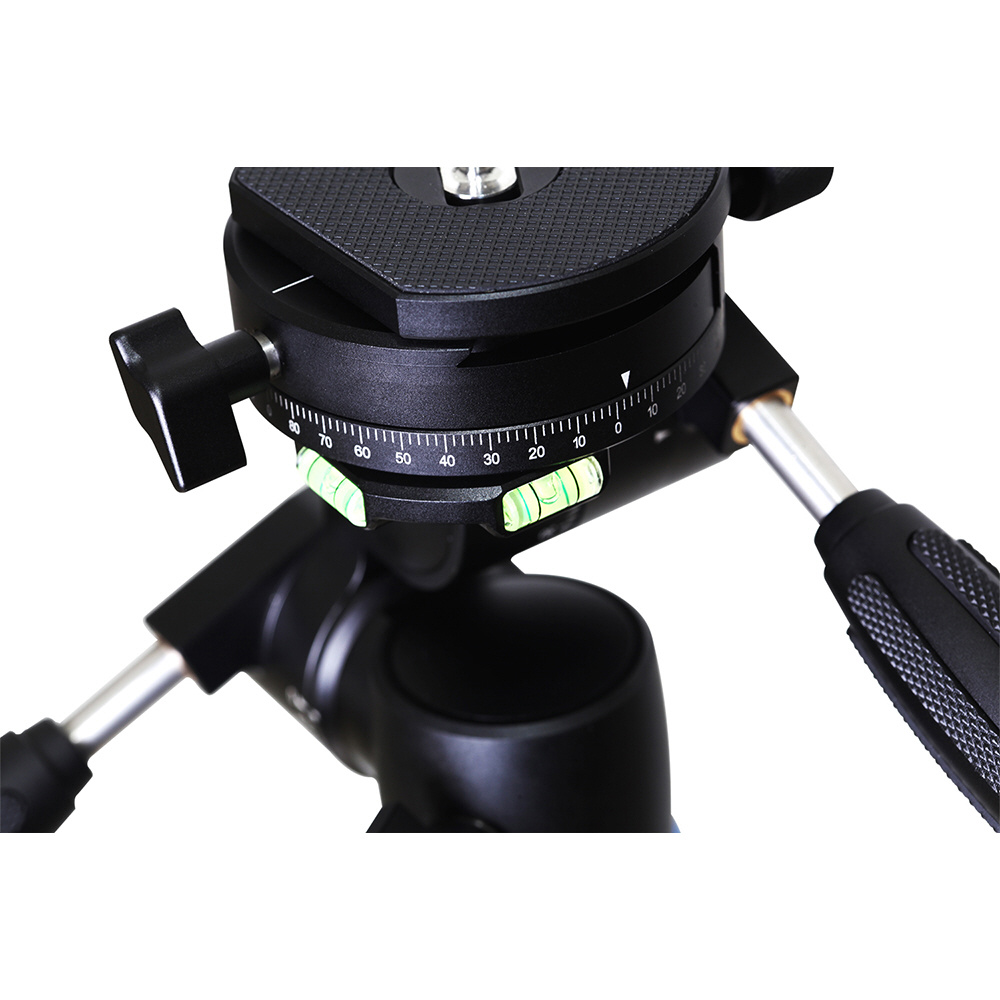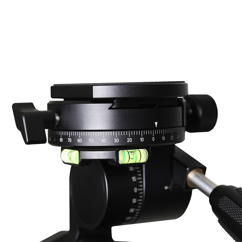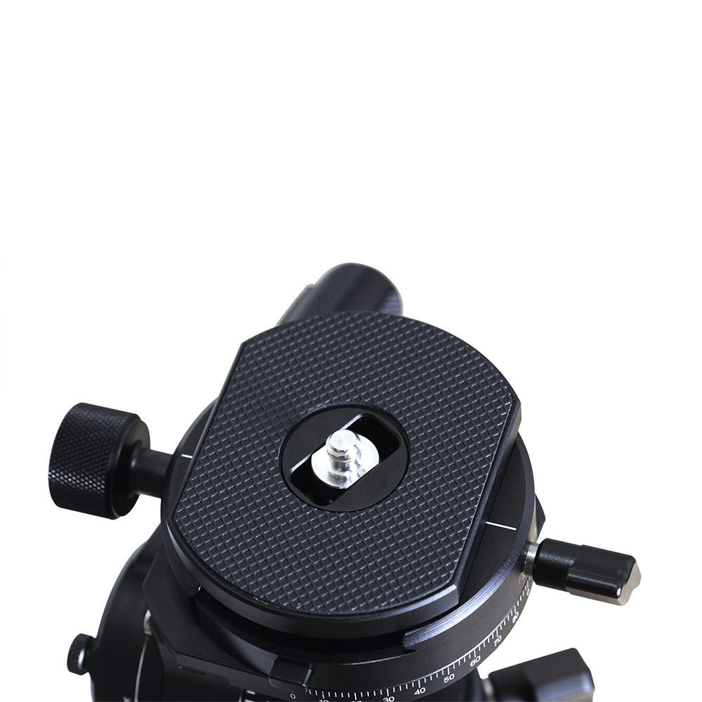 構図の正確性を生み出す4次元調節機能(台座水平360度/頂部360度/2軸-55度〜+90度/-90〜+90度傾斜)。