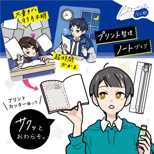 ・面倒な授業プリントの整理・ノート作りを超時短!スパッとカットができるプリントカッターで、スタディーパフォーマンス向上!・カットガイドを使えば、A4&B5プリントの四辺カットが超カンタン。一般的なB5サイズのノートへの貼り付けが時短できます。・レール定規を固定できるシリコンバンド付。勝手に開いたり誤って刃が触れる心配がありません。・プリントは最大5枚まで同時にカットできます。