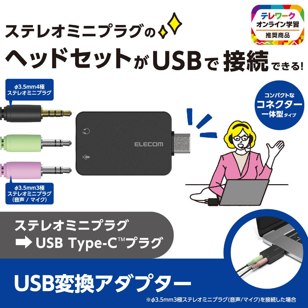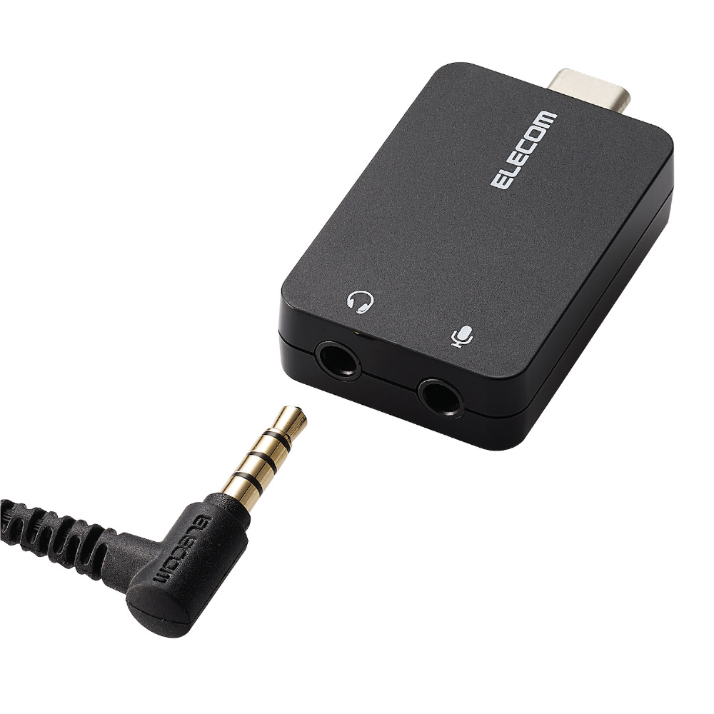 オーディオ変換プラグ [USB-C オス→メス ヘッドセット:3/4極φ3.5mm+マイク:3極φ3.5mm] ブラック USB-CADC01BK