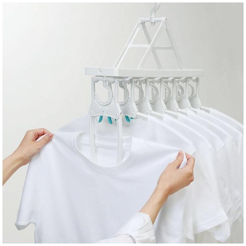 折りたたみ式ハンガーなのでTシャツなどの首元を伸ばさずに簡単に干せます。