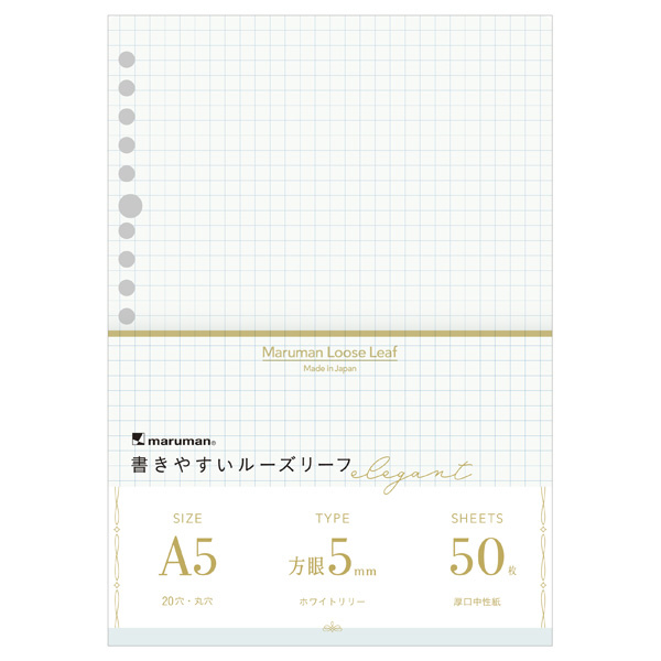 書きやすいルーズリーフ エレガント [A5/5mm/方眼罫線/20穴] ホワイトリリー L1337DA