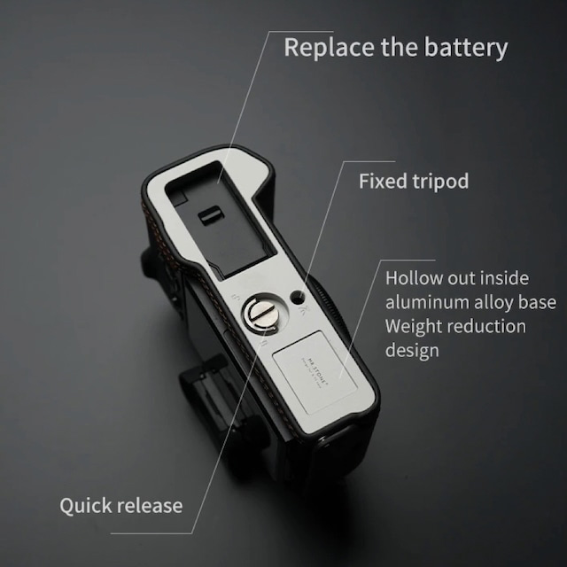 フジフィルム X-T5 専用 本革 ボディケースは、高品質な本革を使用したボディケースです。X-T5との絶妙なマッチングにより、カメラの美しさを引き立てることができます。