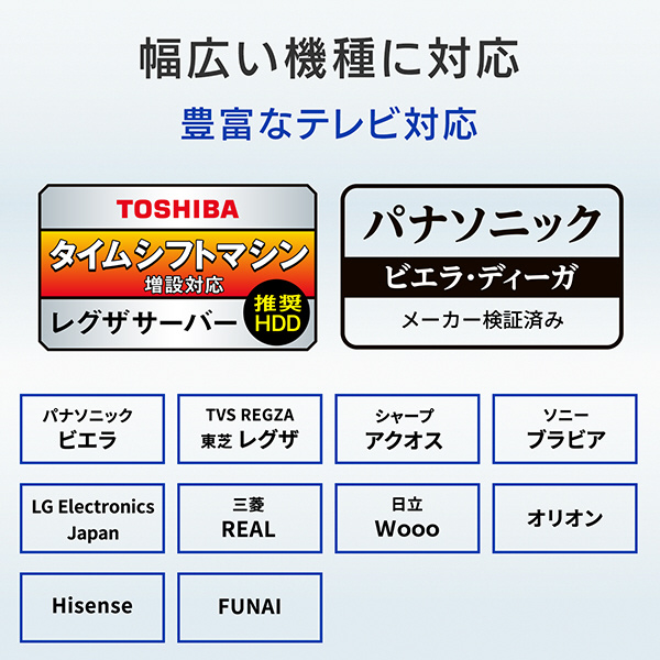 また、パナソニック「ビエラ」「ディーガ」など幅広い機種に対応しており、各メーカーのAV機器と組み合わせて安心してご利用いただけます。