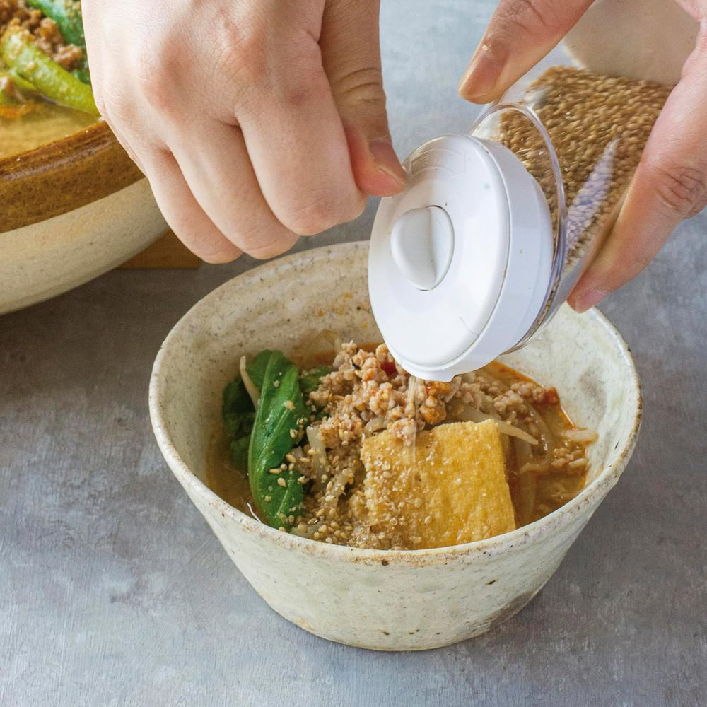 料理にすりたてのゴマがかけられる卓上用ごますり器です。
