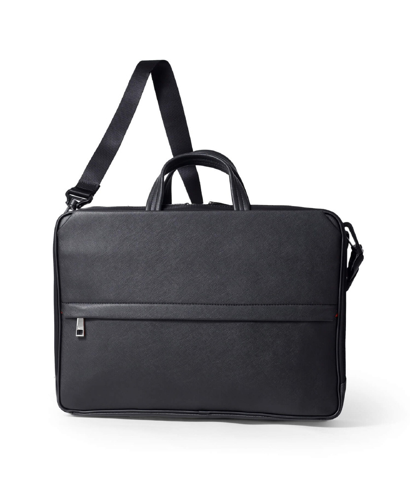 牛革のハンドル、前面には傷が目立ちにくいサフィアーノ型合成皮革を、そしてマチと背面にはナイロンを使用した異素材コンビでスッキリとしたデザインのビジネスバッグです。持ち手のハンドルをコンパクトに収納可能。リュックやショルダーバッグとして使用する際には収納することで、すっきりとスタイリッシュにきまります。ファスナーを金属からスプリットコイルへ変更し、よりスムーズな開閉と軽量化となっています。