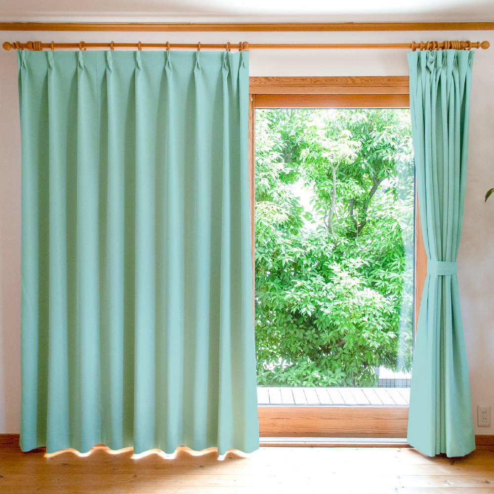 2枚組 遮光・防炎ドレープカーテン マーク2 スカイブルー [幅100×丈135cm /遮光1級]