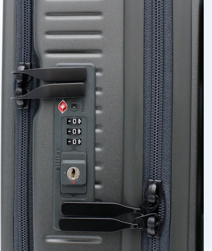 フロント部分はホテル等狭い場所でも開閉しやすい横開きタイプ。通常のスーツケースのように真ん中部分からファスナーを
