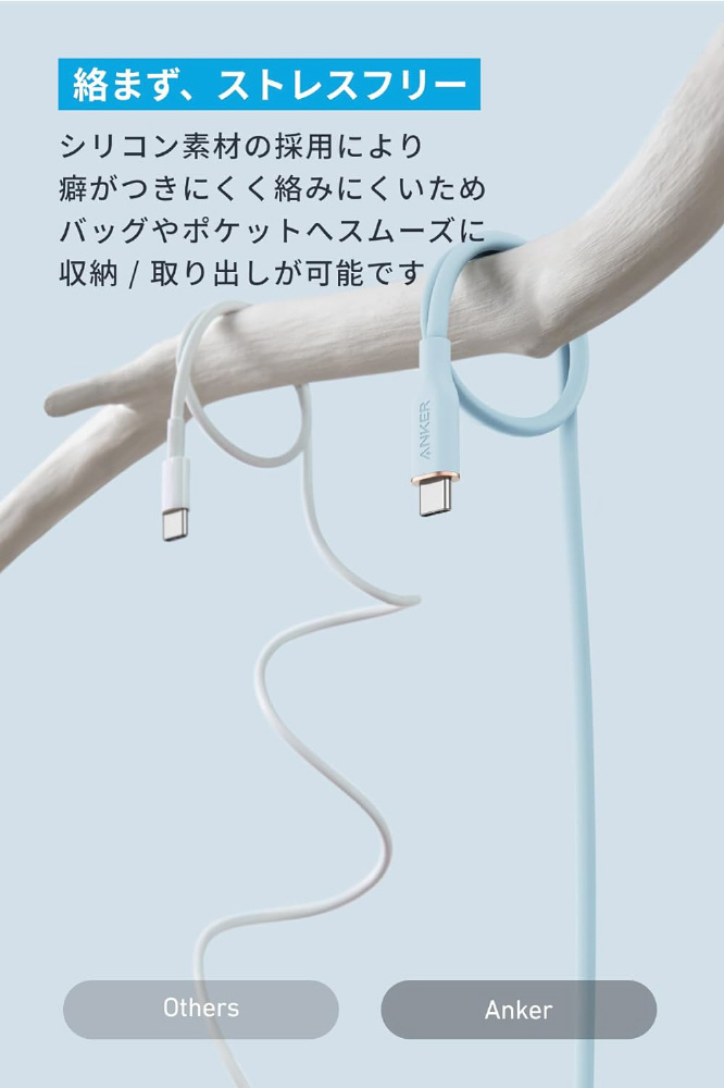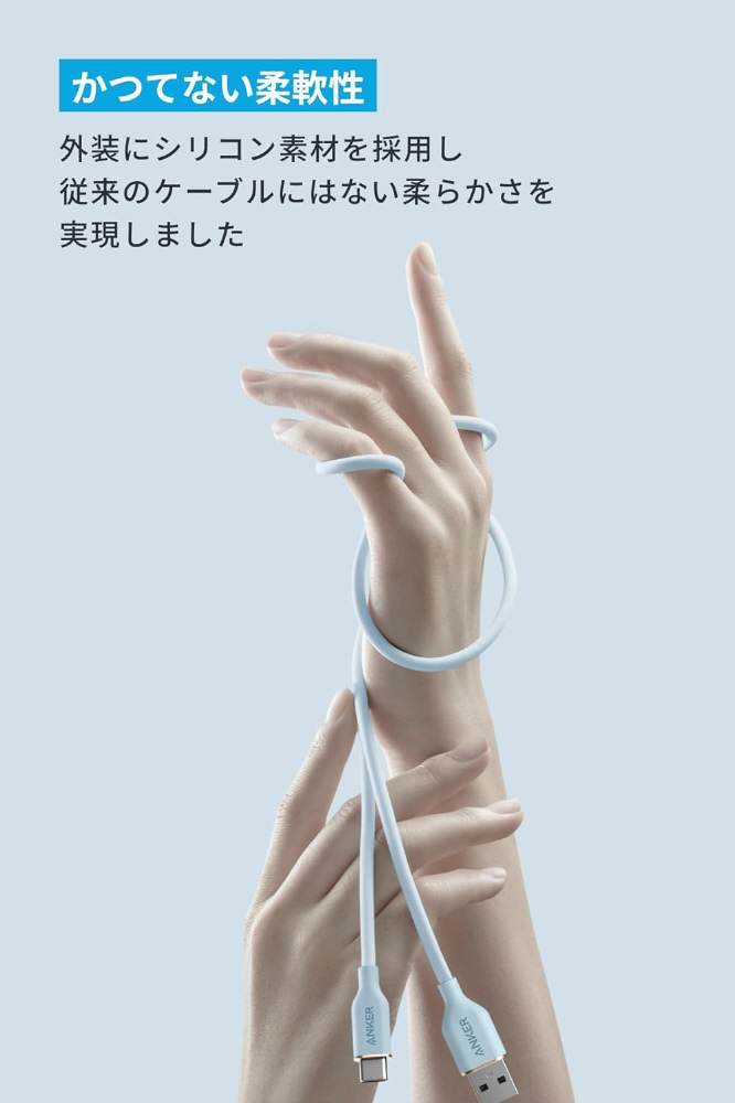 シリコン素材のやわらかなUSB-A&USB-Cケーブル