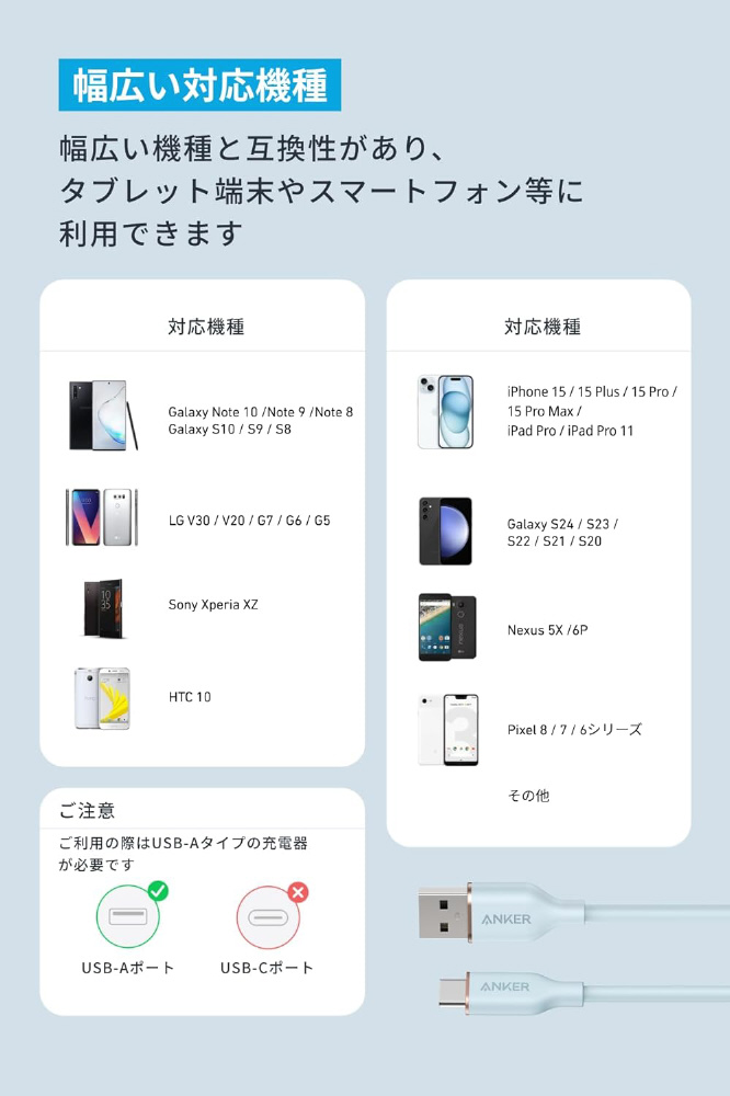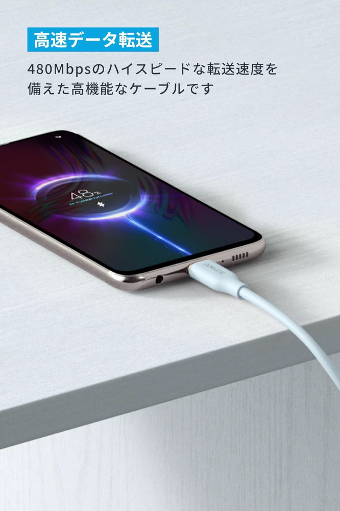 Anker USB-C & USB-A ケーブル (Flow) 1.8m アイスブルー Blue A85G1032 アイスブルー A85G1032