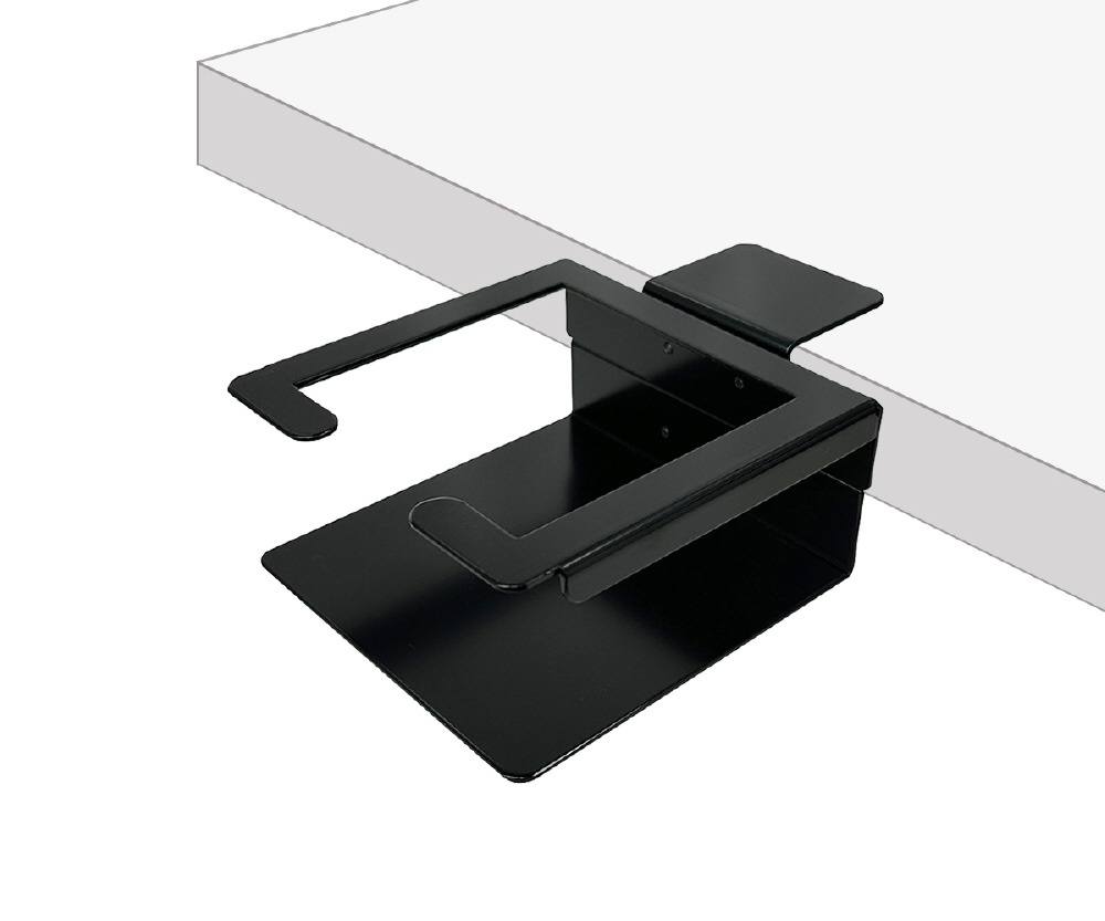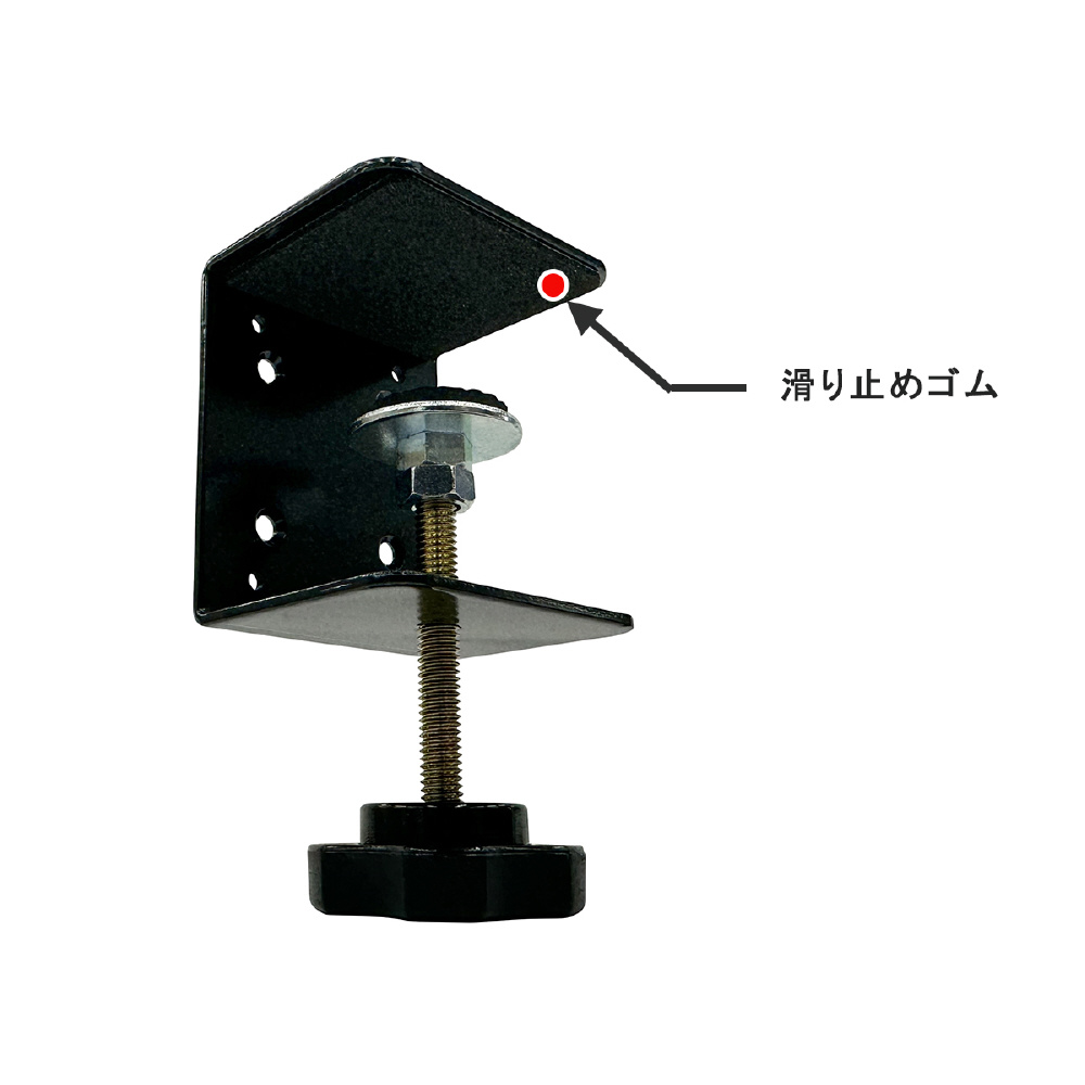 改良型クランプネジ搭載で従来よりガッチリと固定ができ、棚やテーブルなど取り付け場所を選びません。クランプ部分には傷防止のクッションと滑り止めゴムが付いています。クランプ式で簡単に取り外しが可能です。最大40mm厚まで対応可能。
