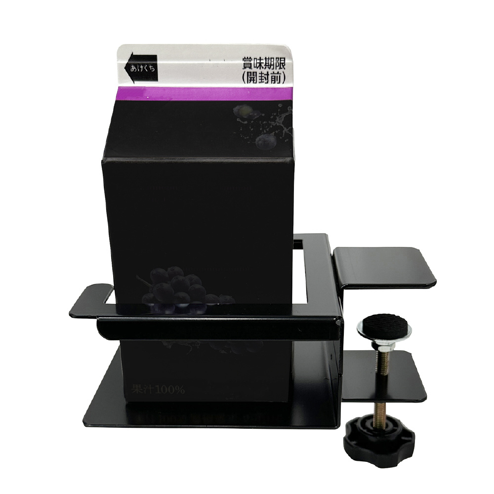 紙パックなどの角型飲み物に対応したクランプ式の角型ドリンクホルダーです。飲み物の定位置を決める事でデスクを広く、快適に使える。飲み物をこぼす心配や、水滴等でデスクが濡れるのを防ぎます。