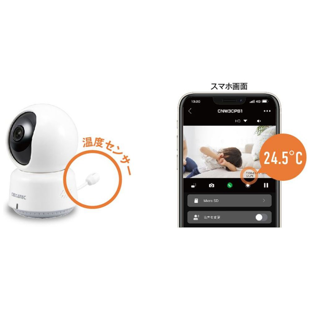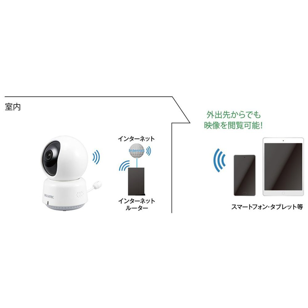 最大200万画素の屋内専用卓上みまもるカメラです。ワイヤレス接続で簡単設置。マイクとスピーカーが内蔵で集音、声掛け可能。専用アプリで外出先から映像確認、複数人で録画映像の閲覧可能。赤外線対応で夜間や暗い場所でも撮影可能。温度センサー内蔵の為、離れた場所で室内気温が確認可能。録画は、microSDカードかクラウド録画サービス「Antenna-eye」の選択ができます。本製品は、自社環境認定基準を1つ以上満たし、『THINK ECOLOGY』マークを表示した製品です。