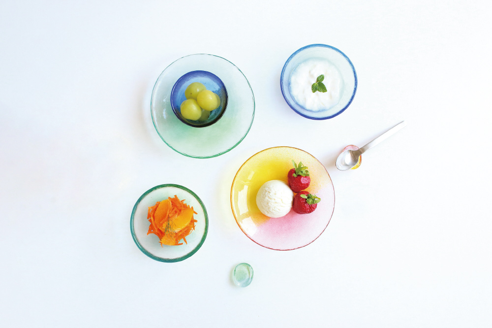 移ろいゆく空の色を表現した江戸硝子のボウルです。江戸硝子職人による手作りなので、毎日映す色を変える空のようにひとつひとつ違った表情をしています。涼しげな印象のガラスの器は暑い夏の食卓におすすめなアイテムです。