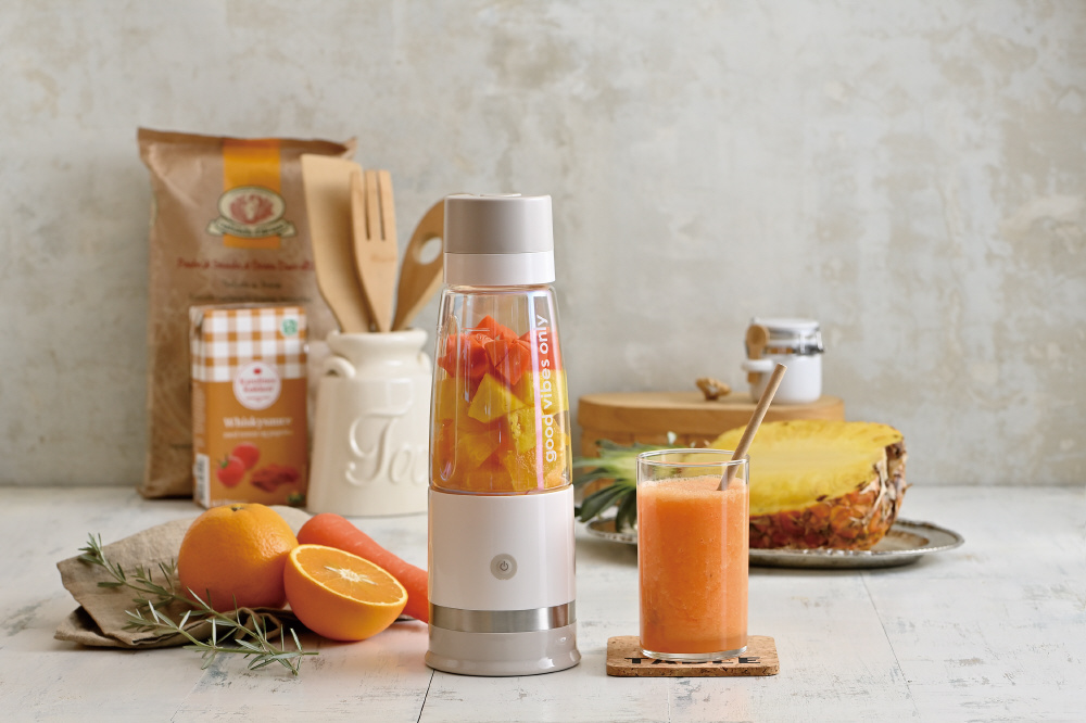 真空状態で攪拌し素材の味わいそのまま!栄養満点なドリンクが作れる! 充電式&持ち運びパーツ付きだから、いつでもどこでも楽しめる!
