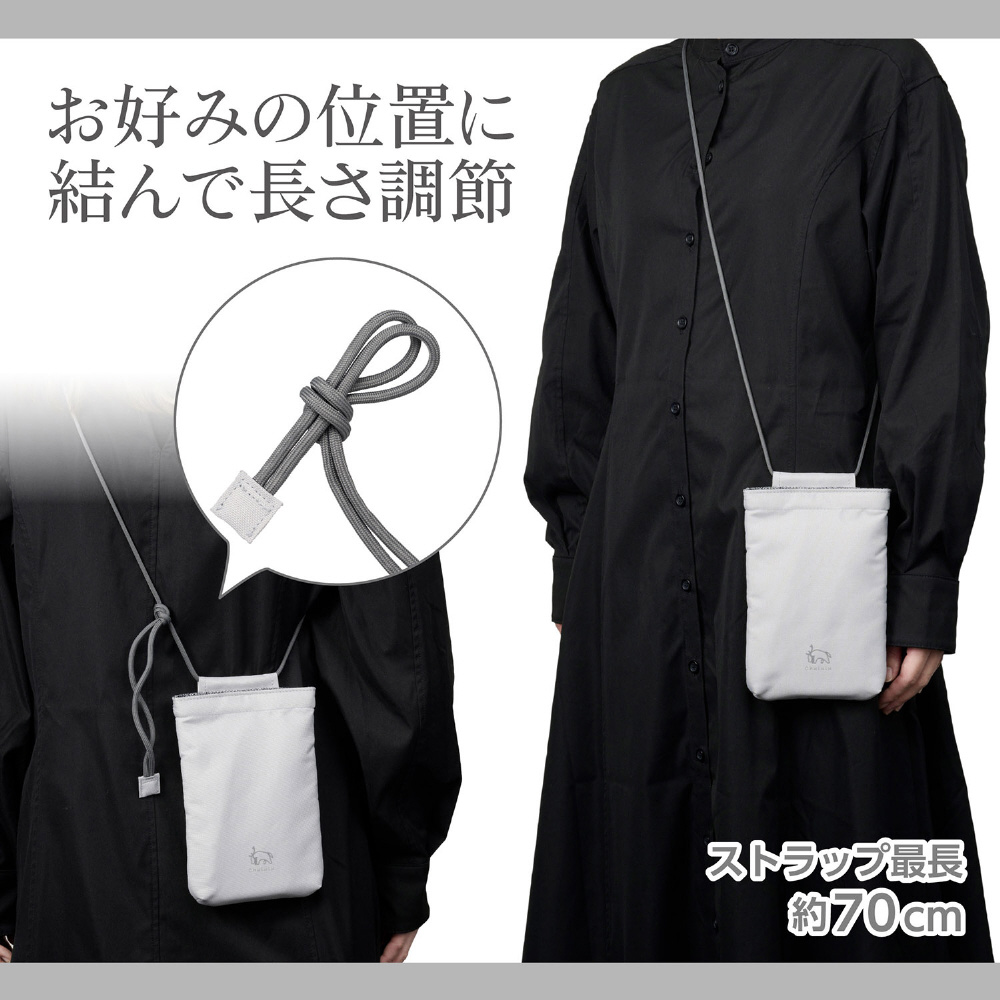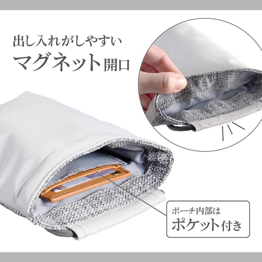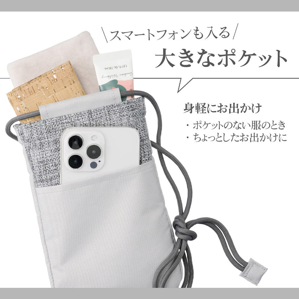 スマートフォン、お財布、キーケースやハンカチなど、必要なものだけをコンパクトに収納し、斜め掛けで身軽にお出かけできる軽くておしゃれなショルダーポーチ。