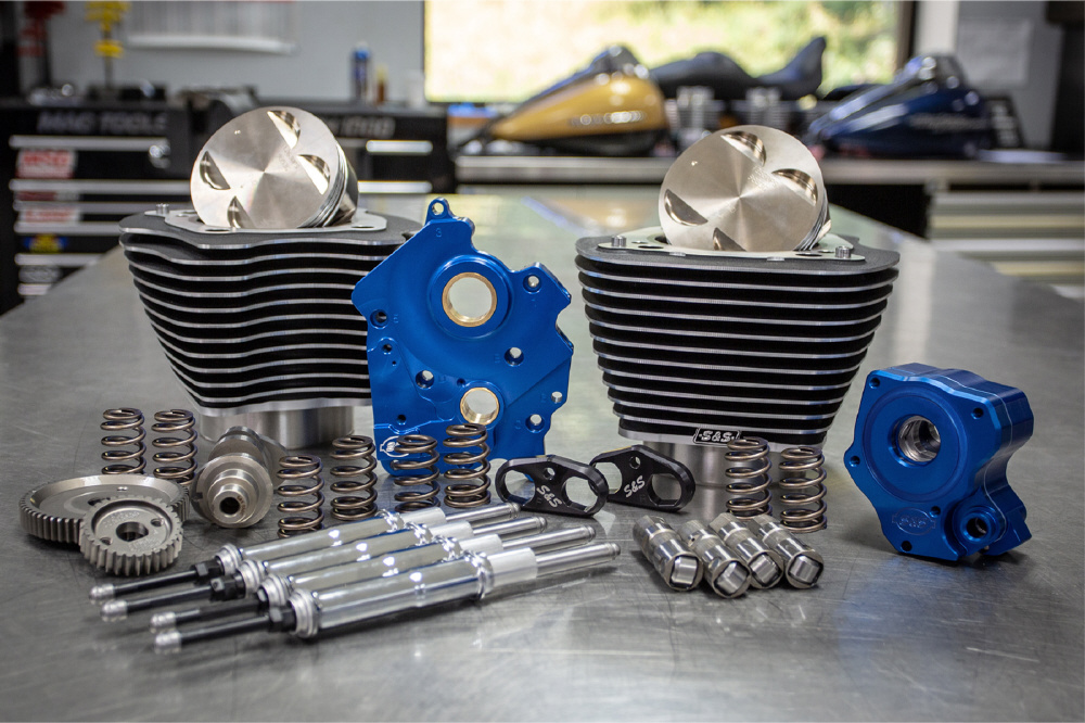 カム:S&S 550カムはビッグボア車両に合わせてデザイン。550Gギアドライブカム。ギアドライブキットは、カムタイミングの精度を向上させ、純正カムチェーンテンショナーを不要にします。ギアドライブキットは、アウタードライブギアを含みます。
