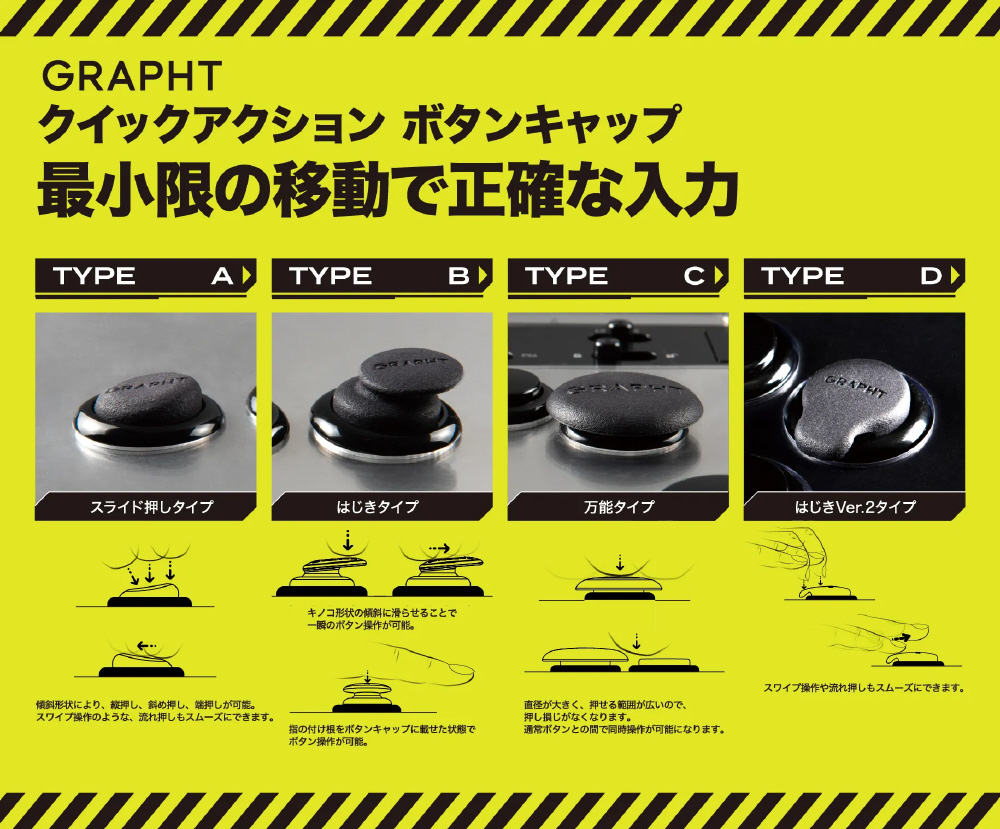 格闘ゲームプレイヤー向けに設計した、さらっとした手触りで光沢の無いマットタイプのボタンキャップです。