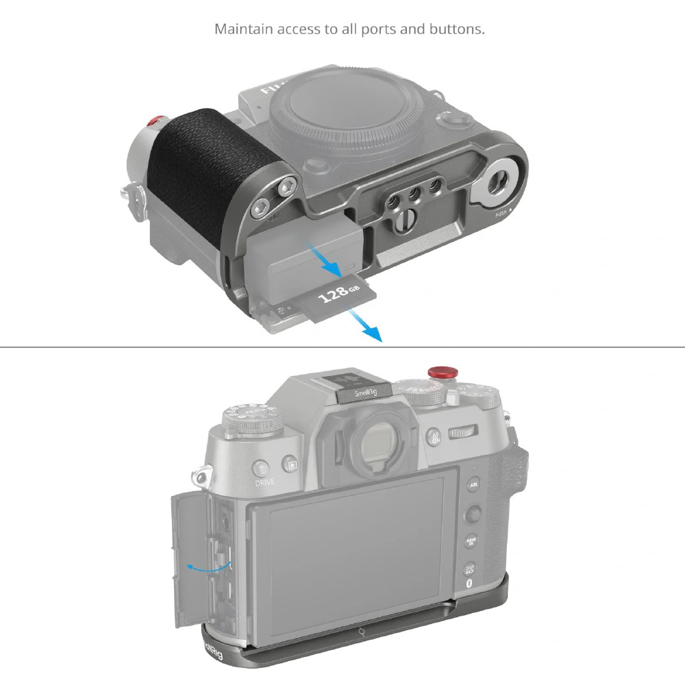 SmallRig X-T50用シリコンL型グリップは、カメラのグリップを向上させるために設計されています。L型グリップは、底部に1/4”-20ねじでカメラに取り付けられ、内蔵のシリコンパッドが傷を防ぐ。指に柔らかく快適な触感を提供するためのシャッターリリースボタンも付属しています。