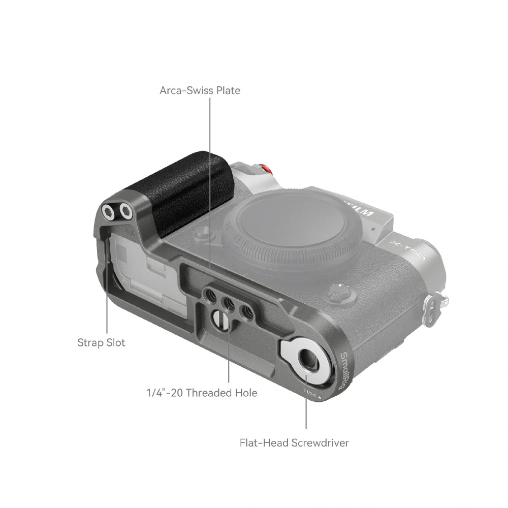 SmallRig X-T50用シリコンL型グリップは、カメラのグリップを向上させるために設計されています。L型グリップは、底部に1/4”-20ねじでカメラに取り付けられ、内蔵のシリコンパッドが傷を防ぐ。指に柔らかく快適な触感を提供するためのシャッターリリースボタンも付属しています。
