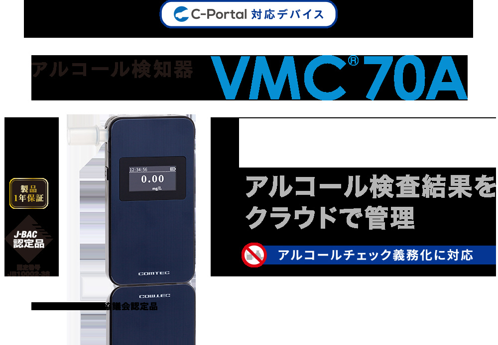 スマートフォンと接続することで運転管理システム「C-Portal」へ、アルコール検査結果を保存。検査結果の管理も簡単。
