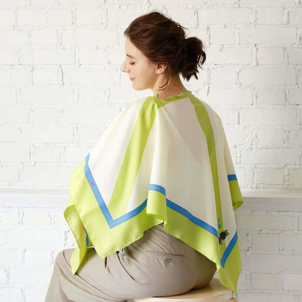 大判サイズの授乳スカーフ。ママの体をぐるりとカバーしてくれるので安心して授乳ができます。大きく広げた時にも映えるようなデザインにこだわりました。肌寒い時などは、赤ちゃんの体にかける薄がけにもなります。