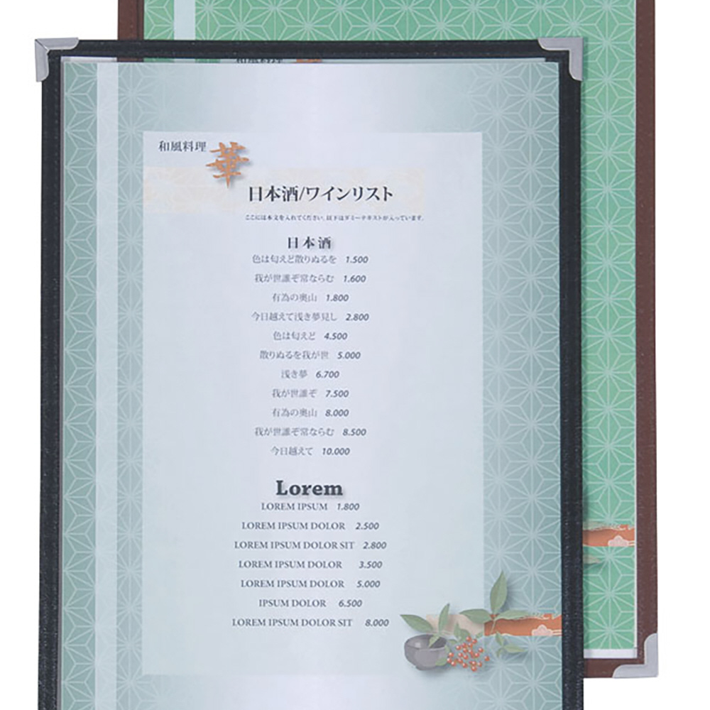 表裏2ページ仕様で、飲み物リストなどに最適です。