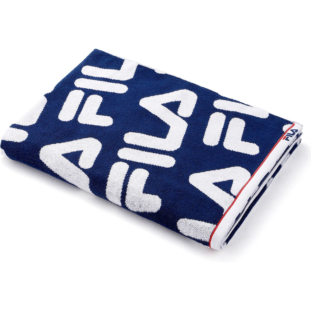 ブランドロゴを連続に並べ、洗練されたスタイリッシュなデザインです。こちらは140cmの正方形となっており、バスタオルとしてはもちろんのこと、ビーチタオルやタオルケットなど幅広くお使いいただけます。両面パイルのふわふわなタオルなので触り心地はもちろん吸水性もバッチリ。