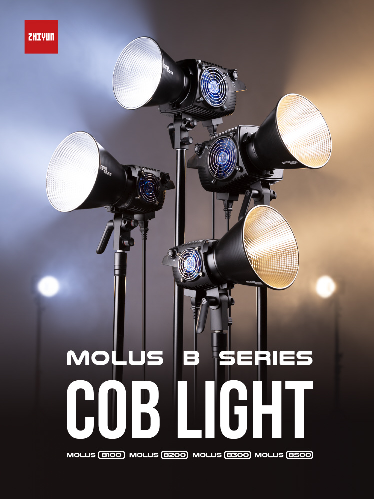ジンバル・撮影用LEDライティング機材のグローバルブランド「ZHIYUN(ジーウン)」から、プロフェッショナルな映像制作を支援する、最新のLEDスタジオライト「MOLUS Bシリーズ:B100/B200/B300/B500」が登場。