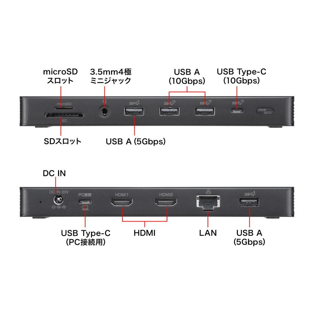 [USB-C オス→メス カードスロットx2 / HDMIx2 / LAN / φ3.5mm / USB-Ax4 / USB-C] USB PD対応 65W ドッキングステーション USB-CVDK16 [USB Power Delivery対応]