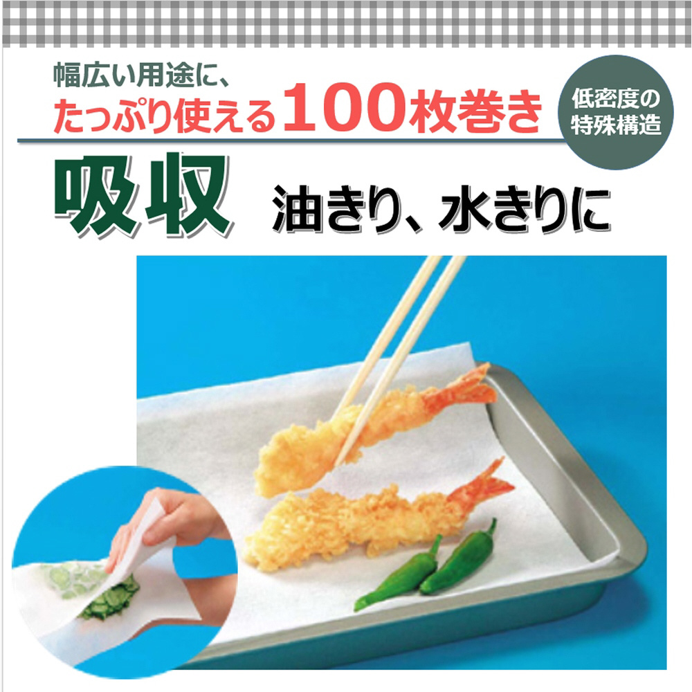 吸油性、吸水性に優れ、揚げ物の油切りや野菜・サラダ・豆腐の水切りなどにご活用いただけます。