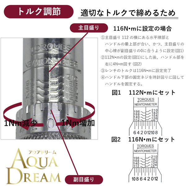主目盛り、副目盛りを見ながら、ハンドルを回して、必要なトルクを設定してください。