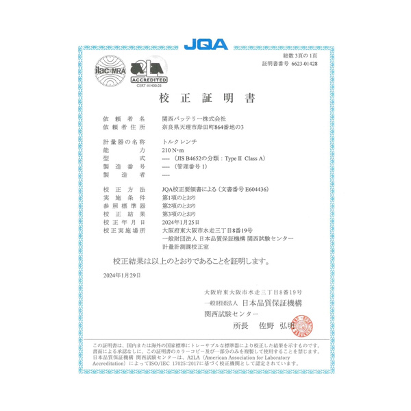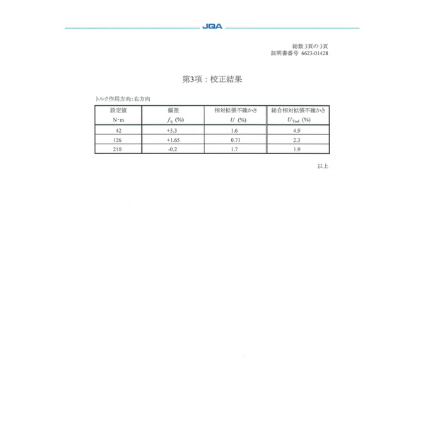●トルク調整範囲:最高値:210N・m/最低値:28N・m