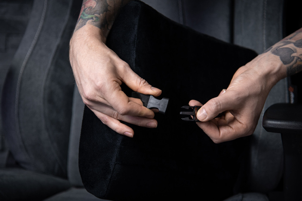 ランバーサポートは、猫背やたるみ、反り腰を防止します。メモリーフォームのスポンジが背中を包み込み、ぴったり合うよう形を整えます。