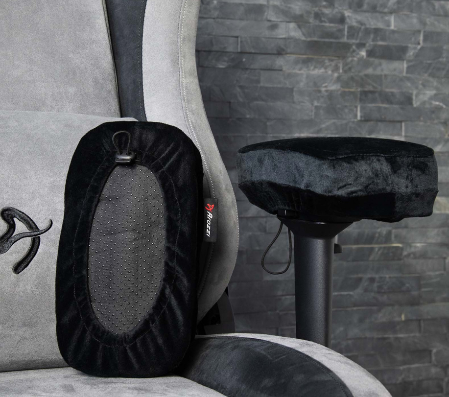 チェアに付属しているプラ??チック製のアームレストが硬いと感じる方には、このアームピローが最適です。クッションは100%のメモリーフォームで作られており、腕と肘を優しく包み込みます。カバーには通気性の良いベルベット・ポリエステルを使用しています。