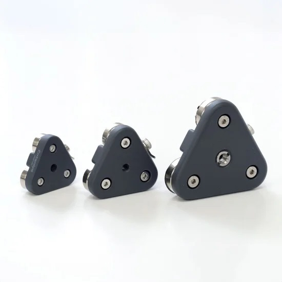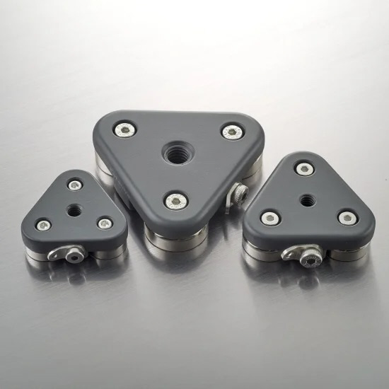 カメラ用ネジ(OM-S、OM-Mは1/4-20、OM-Lは3/8-16)が開けられた三角のプレートに強力なマグネットが備わった製品です。カメラ用ネジを使用してマジックアームなどの撮影用機材が取り付けられるので、金属の壁や板などに簡単にカメラや照明、マイクなどの機材を取り付けられます。